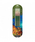 Silver Brush Grand Prix product line was created for artists who use oils. Each brush has excellent paint-holding capabilities and is well balanced. This line offers brushes with cupped and interlocking bristles and split ends for textured art. Silver Brush Grand Prix professional brushes are expertly crafted with natural hog hair. Each paintbrush has a fine tip and a long matte-green handle that reduces glare and is finished with a sophisticated, corrosion-resistant, pure-copper ferrule. Silver Brush superior Grand Prix set of paintbrushes includes round, flat, Bright, filbert, and extralong filbert brushes. This is the perfect set of oil brushes to create broad strokes, landscapes, abstract designs, floral images, and soft edges. Each Grand Prix hog-bristle brush is best paired with oil paint. With their split ends, these professional artist brushes are designed to carry maximum color across the painting surface. Enjoy watching your textured colors come to life.