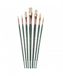 Grand Prix® Flat shape wide variety set: Grand Prix® Flat shape allow artists to get their desired stroke with these sharp edge brushes for all and any artwork, portrait, still life, botanical, florals, abstracts. Grand Prix® Flat shape flat brushes are the most versatile painting tool. For long strokes, fill in color, for landscapes, still life, abstracts, portraiture. Grand Prix® Fine artist brushes feature multi-diameter natural hog bristle that carry heavy bodied acrylic paints effortlessly across your painting surface Professional Premium Brushes: This set includes 7 flat Bristle brushes in the most popular sizes for every creative talent. Shape of Brush: Flat Sizes: #0, #1, #2, #4, #6, #8, #10. This series is stiff, durable and snappy with fine points for crisp, clean strokes. Grand Prix® series are rugged enough to withstand rough treatment on textured surfaces. Grand Prix® series brushes are handmade by expert artisans who undergo extensive training before they are skilled enough to produce the kind of quality that has become synonymous with Silver Brush Limited. Paint Type: Oils, Acrylic, Jar and Heavy Bodied Acrylics, Oils, Gouache, Casein, Varnish.