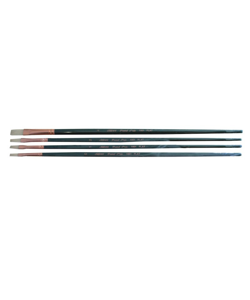 Grand Prix® Long Handle Flat 4-Piece Set, Professional Painting Kit with natural hog bristles. Grand Prix® Flat shape allow artists to get their desired stroke with these sharp edge brushes for all and any artwork, portrait, still life, botanical, florals, abstracts. Grand Prix® Flat shape flat brushes are the most versatile painting tool. For long strokes, fill in color, for landscapes, still life, abstracts, portraiture. Grand Prix® Fine artist brushes feature multi-diameter natural hog bristle that carry heavy bodied acrylic paints effortlessly across your painting surface. Grand Prix® series is stiff, durable and snappy with fine points for crisp, clean strokes. Grand Prix® series are rugged enough to withstand rough treatment on textured surfaces. Grand Prix® series brushes are handmade by expert artisans who undergo extensive training before they are skilled enough to produce the kind of quality that has become synonymous with Silver Brush Limited. Paint Type: Oils, Acrylic, Jar and Heavy Bodied Acrylics, Oils, Gouache, Casein, Varnish. Silver Brush Ltd is owned by a 4th generation art materials family and proud of Silver Brush rich heritage in bringing quality supplies to artists and craftsmen throughout the world. We delight in challenging the status quo and putting Silver Brush experience to work for you because Art is for Everyone!