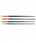 Grand Prix® Long Handle Flat 4-Piece Set, Professional Painting Kit with natural hog bristles. Grand Prix® Flat shape allow artists to get their desired stroke with these sharp edge brushes for all and any artwork, portrait, still life, botanical, florals, abstracts. Grand Prix® Flat shape flat brushes are the most versatile painting tool. For long strokes, fill in color, for landscapes, still life, abstracts, portraiture. Grand Prix® Fine artist brushes feature multi-diameter natural hog bristle that carry heavy bodied acrylic paints effortlessly across your painting surface. Grand Prix® series is stiff, durable and snappy with fine points for crisp, clean strokes. Grand Prix® series are rugged enough to withstand rough treatment on textured surfaces. Grand Prix® series brushes are handmade by expert artisans who undergo extensive training before they are skilled enough to produce the kind of quality that has become synonymous with Silver Brush Limited. Silver Brush Ltd is owned by a 4th generation art materials family and proud of Silver Brush rich heritage in bringing quality supplies to artists and craftsmen throughout the world. We delight in challenging the status quo and putting Silver Brush experience to work for you because Art is for Everyone!