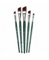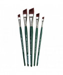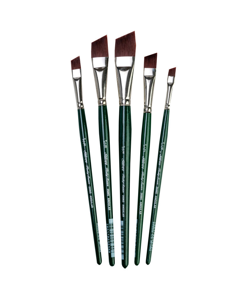 Ruby Satin® series brushes are handmade by expert artisans who undergo extensive training before they are skilled enough to produce the kind of quality that has become synonymous with Silver Brush Limited. Ruby Satin® fine artist brushes feature multi-diameter synthetic filaments that carry heavy bodied paints effortlessly across your painting surface. This series is stiff, durable and snappy with fine points and chiseled edges for crisp, clean strokes. Ruby Satin® series are rugged enough to withstand rough treatment on textured surfaces. These brushes imitate natural hog bristle, so expect textured strokes and excellent paint carrying capacity. Ruby Satin® short handle angle brushes, are the perfect investment for anyone taking their artwork seriously. The investment in these brushes will pay dividends over the years to come. Rugged, long lasting, durable are the key elements to these brushes. Ruby Satin® Angle artist brushes are made to exacting detail. The angle brush is perfect for quick and tight draw downs. Controls color on surfaces. Make a beautiful flower petal with just one stroke. Double load, float color, add expression and décor with this one brush to every painting. A must for every artist's studio. Perfect for one-stroke florals! Botanicals, plein air painting, tole and decorative art. Angle brushes are known for their controlled tight stroke and pointed tips. Perfect for fine lines. Use Ruby Satin® angle brushes for botanical shapes, details of the human form, and portraiture. With the proper amount of pressure, you can achieve fine lines, broad strokes or precise details. For illustration, design, and details. Ruby Satin® Angle brushes are the most versatile painting tool. Use on any surface and substrate including canvas, paper, metal pieces, wood, panels, furniture, walls and so much more. This is a very strong and rugged brush. They should last for years to come. You really get your money's worth. Paint Type: oils, acrylics, watercolors, tempera, artist painting, detail painting, craft art painting, models