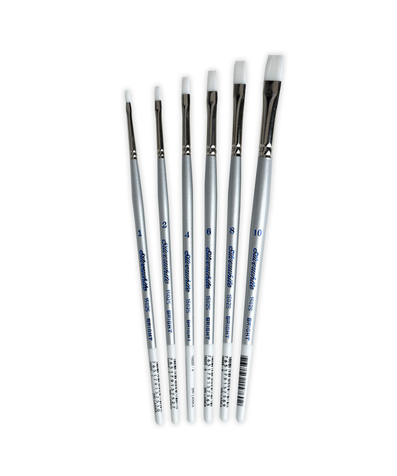 - Silverwhite® Bright (short flat) shape easily carries color to all parts of your painting. Sharp edges make the perfect mark.