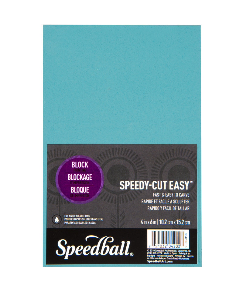 The Speedball® Speedy Cut Easy™ Block, 4x6 in, Blue provides a smooth, forgiving surface that makes block printing accessible for artists of all levels. Softer than traditional linoleum, this block cuts easily with standard lino cutters, allowing for smooth curves, detailed lines, and clean textures without resistance. Its consistent density ensures even ink transfer for crisp, reliable prints. Specially engineered for use only with water-soluble block printing inks, the block is perfect for classroom instruction, hobby printmaking, and introductory relief printing techniques. Lightweight, latex-free, and easy to carve, the Speedy Cut Easy™ Block is widely trusted for stamp-making, pattern design, and general relief printing projects.