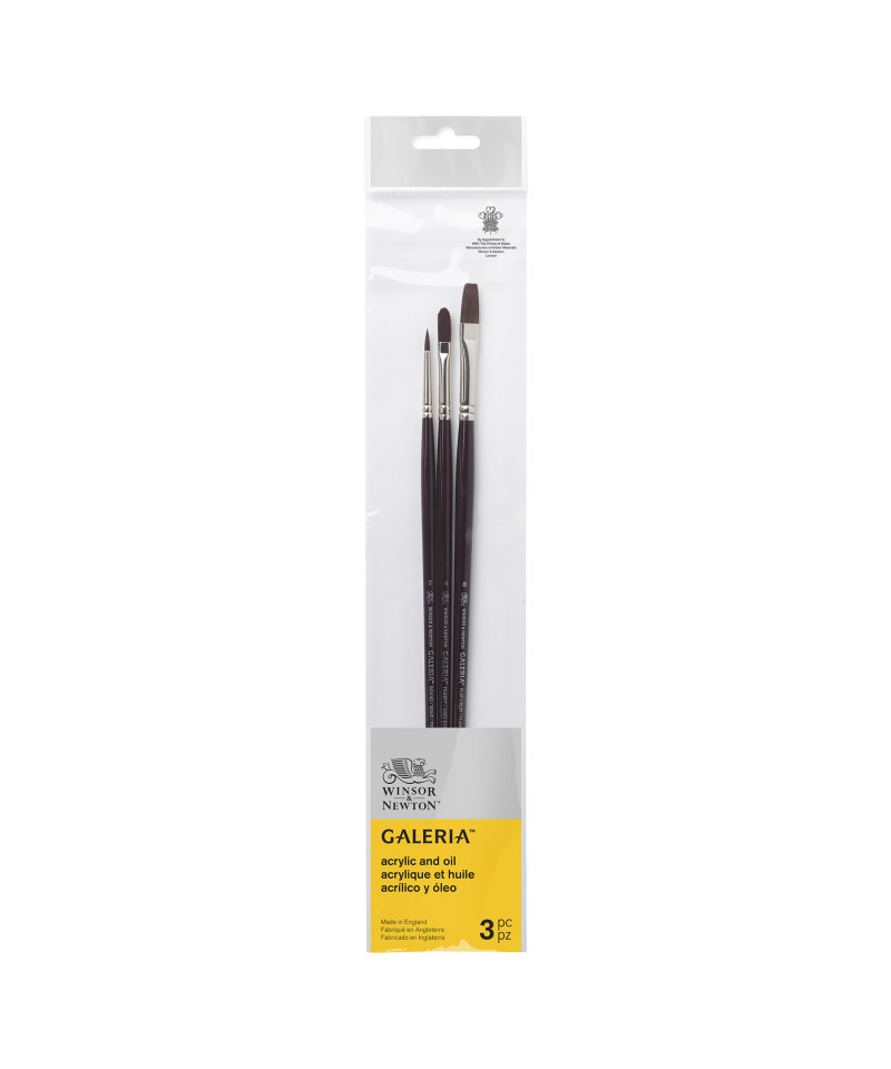 Elevate your acrylic painting with the Galeria Acrylic Brushes Pack #2, Long Handle, Set of 3 by Winsor & Newton, designed for artists who need durable, high-performance brushes that can handle the thicker body of acrylics with ease. This versatile set includes Round 2, Flat 8, and Filbert 4, three complementary brush shapes that together support detailed linework, strong edge control, smooth coverage, and expressive blending.