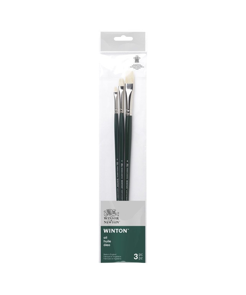 Get reliable, controlled performance with the Winton Oil Brushes, Long Handle, Pack #1, Set of 3 by Winsor & Newton, designed for artists who prefer firm, responsive brushes tailored for oil and heavy-body acrylic painting. This set features three Short Flat Bright brushes, Sizes 2, 4, and 8, offering a progression of widths ideal for crisp edges, bold directional strokes, controlled blending, blocking in color, and sculptural mark-making.