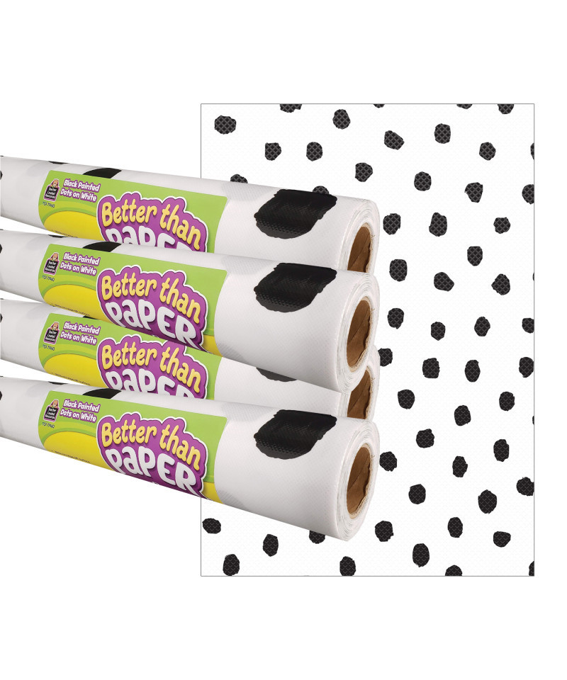 Teacher Created Resources® Black Painted Dots on White Better Than Paper Bulletin Board Roll, 4' x 12', Pack of 4