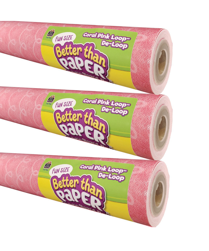 Teacher Created Resources® Fun Size Better Than Paper® Bulletin Board Roll, 18" x 12', Coral Pink Loop-De-Loop, Pack of 3