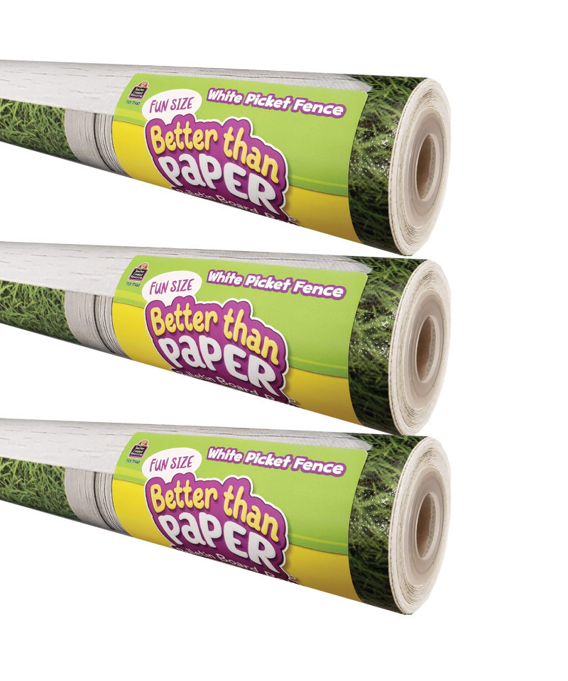 Teacher Created Resources® Fun Size Better Than Paper® Bulletin Board Roll, 18" x 12', White Picket Fence, Pack of 3