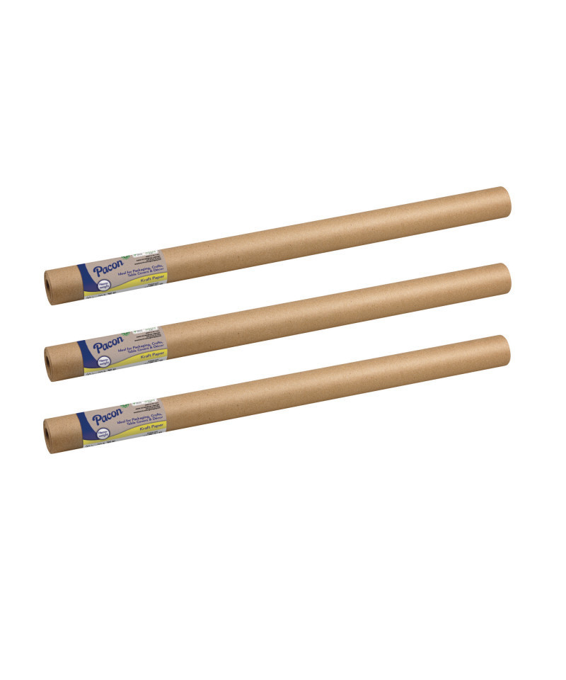 This heavyweight Natural Kraft paper is durable, and ideal for many classroom uses, such as arts & crafts, packaging, table covers, or even classroom décor. Recycled and recyclable. Each roll includes 30" x 30'. Sold as a pack of 3 paper rolls.