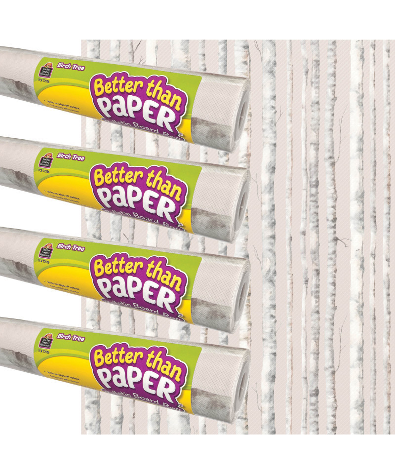 This revolutionary fabric makes creating beautiful bulletin board backdrops quick and easy! Featuring a realistic birch tree design, this backdrop adds a rustic and serene feel to any classroom...and the lightweight material is simple to hang—no more struggling with paper that wrinkles and tears. Attach border trim, accents, posters and student work with staples or tape and remove without ripping or leaving conspicuous holes. Plus, the durable write & wipe surface can be used again and again! Each roll measures 4' x 12'. Sold as a pack of 4 rolls.