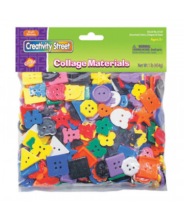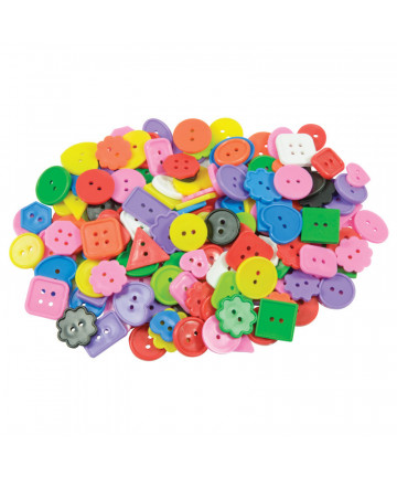 Perfect for small hands! Extra Large Buttons are great for stringing, sorting, gluing or counting. Eight primary shapes and bright colors.