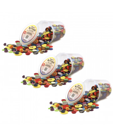 Really Big Buttons™ are perfect for little hands! Introduce counting, sorting and shape recognition with extra big buttons in bright colors. Big holes for easy stringing or use in collage work. Buttons measure 2" x 2" (5 x 5cm) and include holes for stringing. Each pack includes 60 buttons in 8 different designs and assorted bright colors. Sold as 3 packs for a total of 180 buttons.