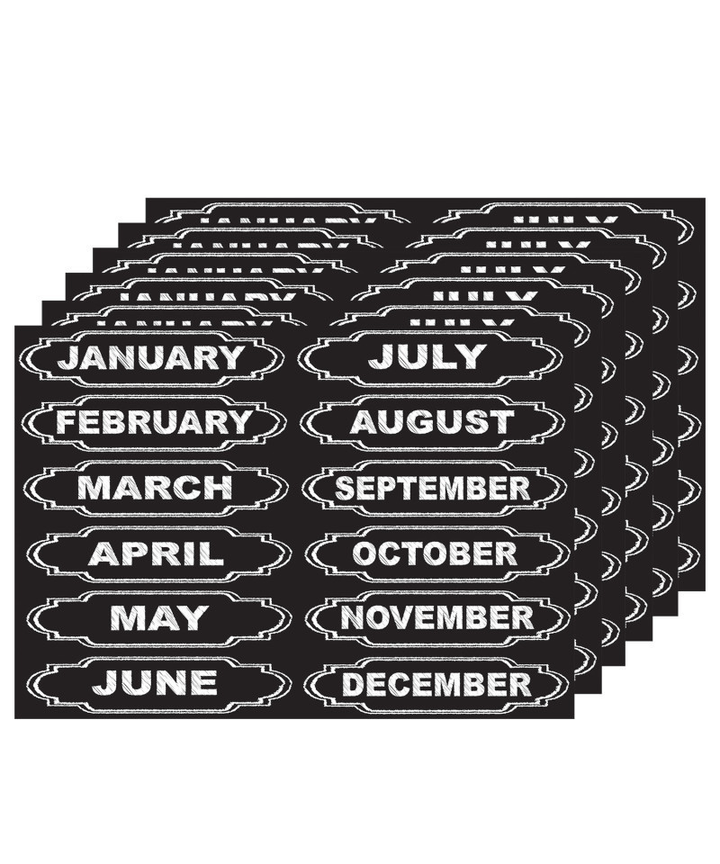 Organize your classroom or home with our magnetic chalkboard style column headers. Use these pre-printed time savers for DIY calendars on whiteboards, steel lockers, refrigerators, and more. Die-cut headers easily punch out from 8-1/2" x 11" sheet. Includes 12 pieces per pack, 1 header per month. Sold as 6 packs for a total of 72 pieces, 6 headers per month.