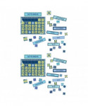 Teach and keep track of the days of the week and month with a 85 piece bulletin board set. Set includes 1 Giant Calendar (17" x 24"), 12 Month Headings, 33 Dates and 37 Special Days. Packaged as four 17" x 24" panels. Coordinates with the Blue Harmony collection. Sold as 2 calendar sets.