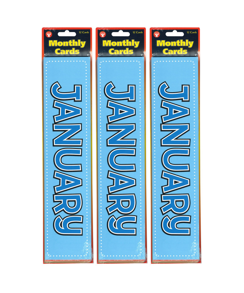Hygloss Monthly Calendar Cards are brightly colored cards with the month names clearly printed on each card for interactive learning fun. Teachers and educators will find teaching about the months of the year fun and inviting with Monthly Calendar Cards from Hygloss. These monthly calendar cards come in brightly colored strips with the month names clearly printed on each card to help students identify the months contained in the calendar year. Each pack contains 12 names of the month cards. Sold as 3 packs for a total of 36 cards.