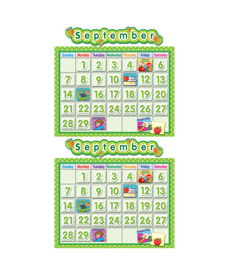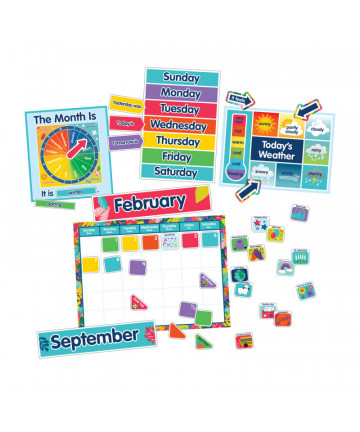 Inspire smiles every day with a polka dot calendar. This bulletin board includes a blank calendar, easy-to-read numbers pieces, colorful monthly headers, and additional pieces for holidays and special occasions.