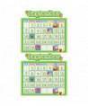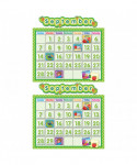 The holiday pieces are: Valentine's Day, Thanksgiving, St. Patrick's Day and President's Day. The special occasion pieces: 100th Day, Computer Lab Day, Early Dismissal, Field Trip, Happy Birthday, Library, No School, Open House, Picture Day, Project Day, Recognition Day, Special Assembly, Spring Break, Testing Day and Winter Break. Plus three blank cards that you can customize. The blank calendar measures 24" x 18". Includes over 65 pieces! All pieces are UV coated for durability.