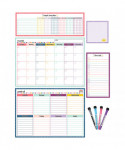Keep track of important dates, activities, and tasks with this write-on/wipe-off dry-erase magnetic calendar set. Organize your busy schedule by filling in the monthly and weekly calendar charts. Use the habit tracker to stay on top of daily routines like exercising and practicing a skill. For notes and reminders, use the list or the square note to keep track of what you need or quickly get your point across. Use on refrigerators, whiteboards, lockers, metal desks, metal shelves and more. Includes 4 dry-erase pens in black, blue, pink, and purple. This set includes 17" x 12" monthly calendar, 17" x 12" weekly calendar, 16.75" x 5.75" habit tracker, 5.75" x 11" list, and 5.425" x 5.425" square note.