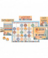 This earthy calendar display comes with easy-to-read number pieces, colorful monthly headers, and additional pieces for holidays and special occasions. It also includes pieces for counting days of the school year, the weather, seasons, days of the week as well as for yesterday, today, and tomorrow. Blank calendar measures 24" x 18". 109 total pieces: Calendar chart and 12 monthly headers, 33 pre-numbered calendar days, 49 special days/events cards and 4 blank cards, Season/Weather pieces, Days of the Week chart, Days in School chart and numbers.