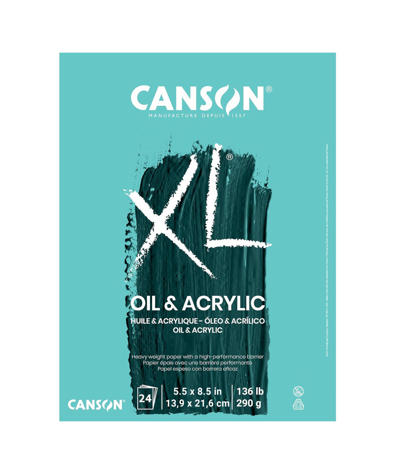 Canson XL Series Oil & Acrylic Pad, Foldover Binding, 24 Sheet, 5.5x8.5 inch, 1 Count