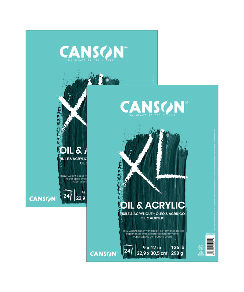 Canson XL Series Oil & Acrylic Pad, Foldover Binding, 24 Sheet, 9x12 inch, Pack of 2