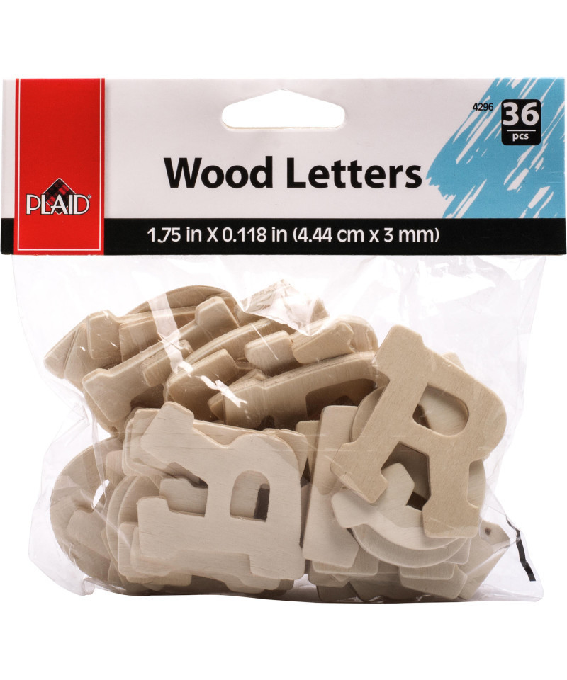 The 36-piece Fun Font Wood Letter set from Plaid is ideal for all types of creative projects—painting, decoupage, stenciling, mixed media, and more. The high quality, lightweight wood features a smooth finish, ensuring great performance with any of our acrylic paints, Mod Podge decoupage finishes, stains and painted finishes, wood-burning, or a combination of techniques.