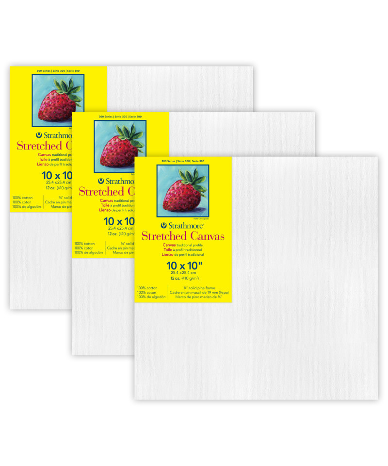Strathmore 300 Series Traditional Stretched Canvas, 10x10 inch, Pack of 3