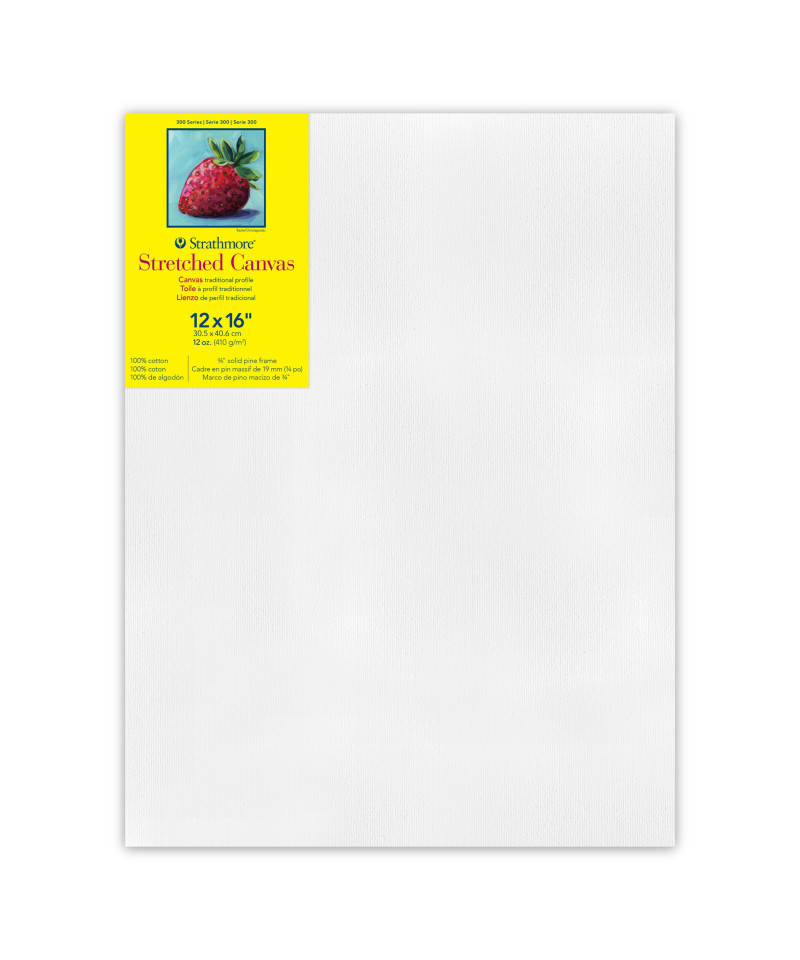300 Series Stretched Canvas from Strathmore is the ideal painting surface for artists of all skill levels. Made from 100% cotton triple primed canvas and with a solid pine wood frame construction, this canvas can withstand heavy applications like collage, impasto, screen printing, and paint pouring without the need to re-stretch the canvas. All canvases are supreme surfaces for acrylic paints, oil paints, water-mixable oil paints, acrylic inks, permanent inks, mixed media, paint pouring, epoxy, spray paint, acrylic markers, texture mediums, stencil work and any other large profile art expression. Apply paint with a brush, wedge, or straight from the tube. The slim frame provides a modern streamlined look, saving space while making artwork ready to showcase. Explore your creativity today with Strathmore 300 Series Canvas!