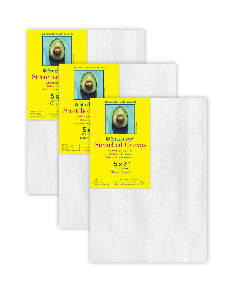 Strathmore 300 Series Gallery Stretched Canvas, 5x7 inch, Pack of 3