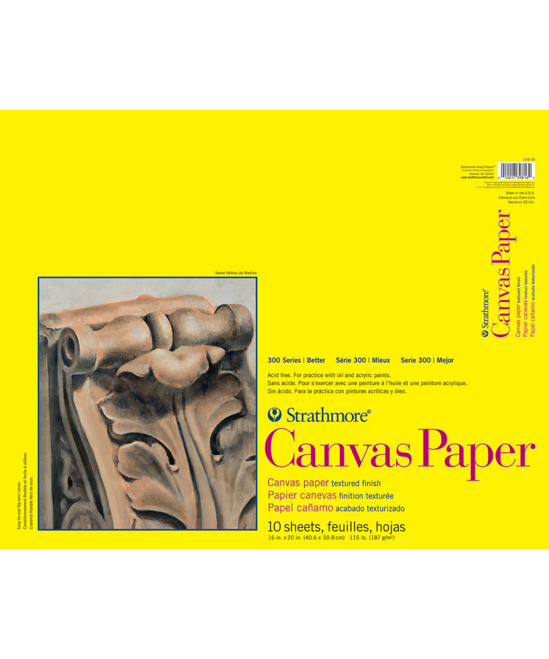 The Strathmore 300 Series Canvas Paper is a canvas-textured paper for practicing techniques with oils & acrylics. Great for sketching, developing skills, & perfecting painting techniques; the Strathmore 300 Series Canvas Paper is great for artists of all levels. The history of Strathmore Paper Company began on St. Patrick's Day in 1892 when its founder, Horace Moses, opened the Mittineague Paper Mill in West Springfield, MA. Strathmore has been a leading supplier of fine art papers for 130 years & founded with the belief that better paper makes better art. Strathmore provides artists of all levels with one of the widest ranges of quality surfaces for producing beautiful works of art, no matter the choice of medium. Listening to the needs of artists & providing inspiration, education, & innovating new products is at the core of what matters to Strathmore. The Strathmore 300 Series provides art students & intermediate hobbyists a range of better quality paper for quick studies, technical practice & final pieces in art class or at home. Including a wide variety of surface types, artists working with watercolor paint, acrylic paint, oil paint, pastel, colored pencil, charcoal, marker, pen, ink & more have a curated pad customized for their needs. Trusted by art teachers & affordable for parents & students, the 300 Series is the best way to help build confidence in intermediate artists!