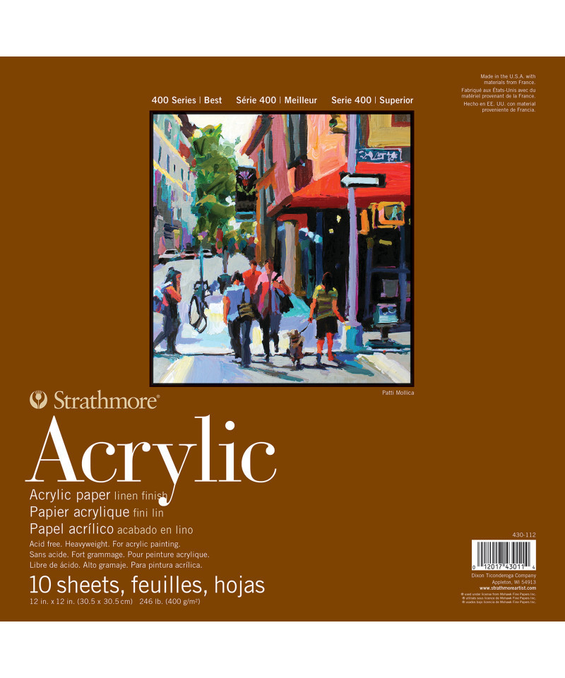 Introducing the 400 Series Acrylic Paper—A sturdy, heavyweight surface with a linen finish specifically designed to handle the thick, layered application of acrylic paint without buckling or warping. Often a more affordable & portable than traditional canvases, making it a practical choice for both practice & finished pieces. The history of Strathmore Paper Company began on St. Patrick's Day in 1892 when its founder, Horace Moses, opened the Mittineague Paper Mill in West Springfield, MA. Strathmore has been a leading supplier of fine art papers for 130 years & founded with the belief that better paper makes better art. Strathmore provides artists of all levels with one of the widest ranges of quality surfaces for producing beautiful works of art, no matter the choice of medium.