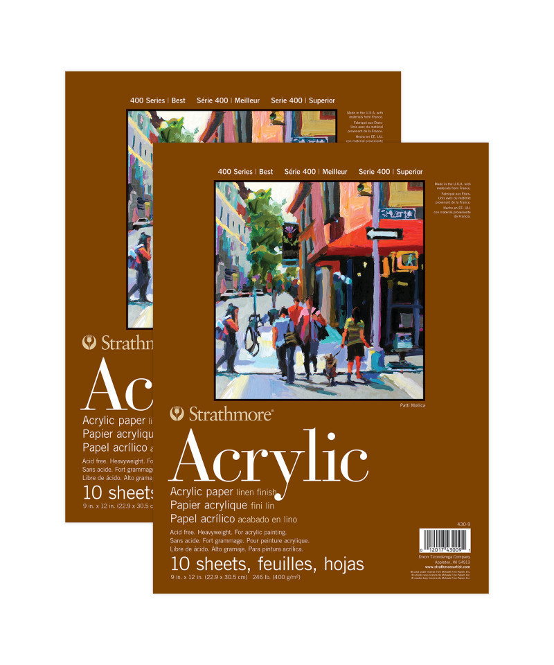 Introducing the 400 Series Acrylic Paper—A sturdy, heavyweight surface with a linen finish specifically designed to handle the thick, layered application of acrylic paint without buckling or warping. Often a more affordable & portable than traditional canvases, making it a practical choice for both practice & finished pieces. The history of Strathmore Paper Company began on St. Patrick's Day in 1892 when its founder, Horace Moses, opened the Mittineague Paper Mill in West Springfield, MA. Strathmore has been a leading supplier of fine art papers for 130 years & founded with the belief that better paper makes better art. Strathmore provides artists of all levels with one of the widest ranges of quality surfaces for producing beautiful works of art, no matter the choice of medium. Listening to the needs of artists & providing inspiration, education, & innovating new products is at the core of what matters to Strathmore. The Strathmore 400 Series, easily recognized by its iconic brown cover, has been a staple in the hands of art students & professional artists. Known for its dependable quality & time-tested durability, this series of art paper provides high school art students, college art students, dedicated hobbyists & career artists a range of surfaces from practice to final pieces. Artists working with watercolor paint, acrylic paint, oil paint, pastel, colored pencil, charcoal, marker, pen, ink & more have a curated pad customized for their needs. Confidently create showcase-worthy pieces for galleries, competitions & online market places with this beloved brand! Sold as a pack of 2.