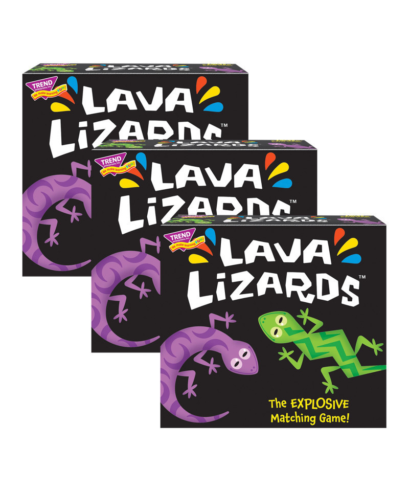 Get ready for a game full of explosive finishes! Lava lizards spend their days lounging on hot lava rocks, unknowingly surrounded by active volcanoes that may explode any second...Use lizard luck to outmatch opponents and outrun the blast...fast! Be careful not to get caught lounging. Uncover all six timer cards and you're in HOT lava! Action Cards add extra challenge when they BLAST, BOOM, and cover progress in Smoke & Ash. Luck-of-the-draw gives all ages chances to win. Challenge friends and family or work together to test your lizard luck. Five games in one for tons of FUN: Build a lava dome, find pairs, and link cards with lizard precision. Triangle cards match by lava colors, lizard colors, and lizard shapes for endless rounds of fun. Each game includes 63 cards plus full-color instructions included. 15-minute play time. 1-4 players, ages 4 to adult. Made in USA. Sold as a pack of 3 identical card games.
