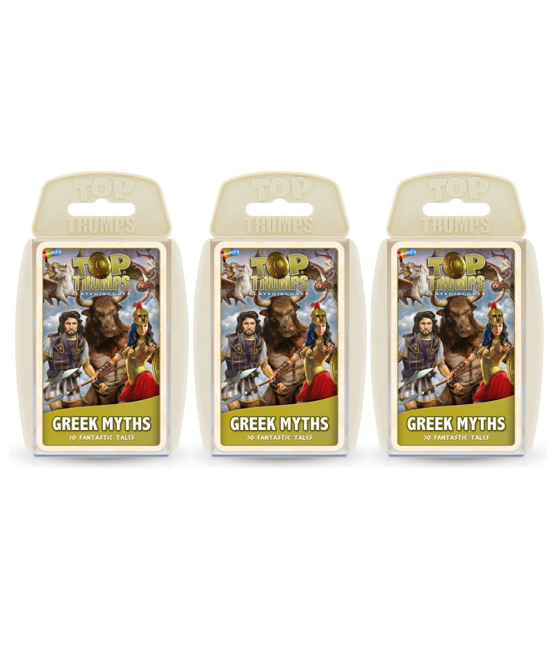 Top Trumps takes you to an exciting, ancient world of heroes, gods and monsters in the brand new Greek Mythology deck. Will you play with foul creatures like the snake-haired Medusa and the one-eyed Cyclops or have brave heroes like Perseus and Odysseus in your hand of cards? Compare the Bravery, Strength and Wisdom of everyone from Icarus to Zeus as you read the mystical tales of adventure and magic that have been passed down from generation to generation. Whose father tried to eat him? Who stole the secret of fire from the Gods and how did the Minotaur come into this world? Find with Greek Mythology Top Trumps! Sold as a pack of 3 identical card games.