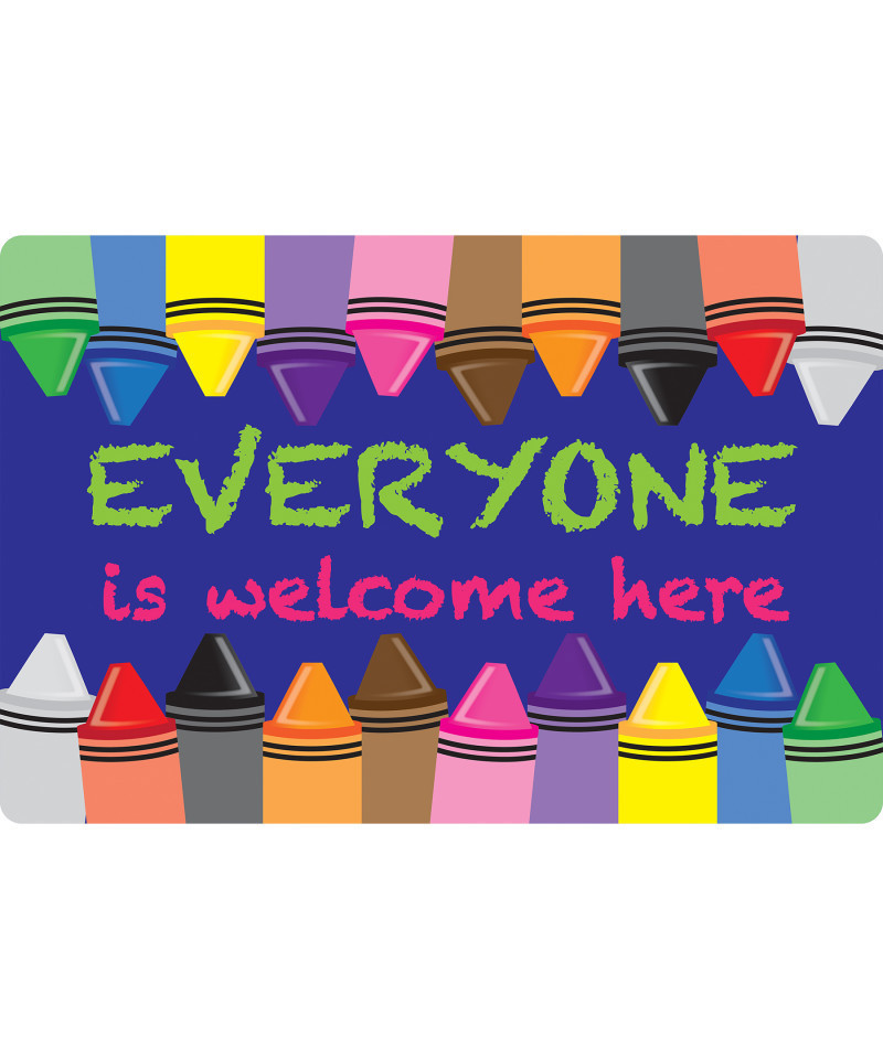 Smart Poly® Welcome Mat with Slip Resistant Backing, 15.5" x 23.5", Crayons, Everyone is Welcome Here