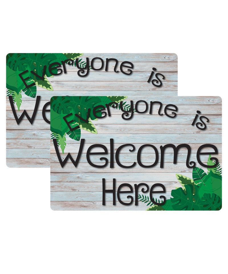 Smart Poly® Welcome Mat with Slip Resistant Backing, 15.5" x 23.5", Beech Wood Greenery Everyone is Welcome Here, Pack of 2