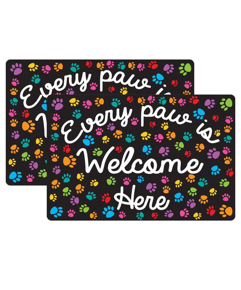 Smart Poly® Welcome Mat with Slip Resistant Backing, 15.5" x 23.5", Paws, Every Paw is Welcome Here, Pack of 2