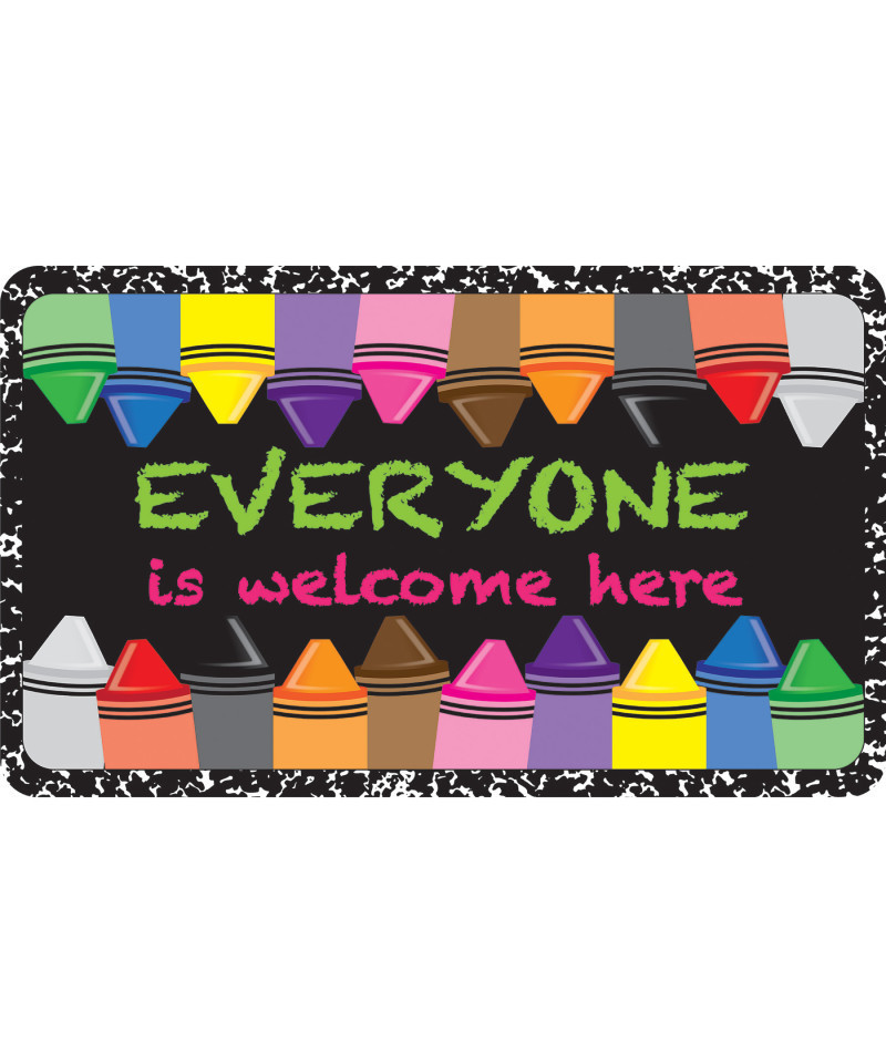 - Measurements and Design: The Everyone Welcome Crayons Composition Welcome Mat measures 18" x 30".