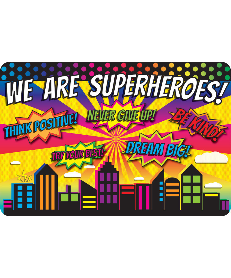 Transform your classroom, home, or office with our vibrant decorative floor mats! Designed to inspire and engage, these eye-catching mats are perfect for creating a welcoming and dynamic learning environment. Featuring a soft, absorbent surface that's easy to clean and a heavy-duty, slip-resistant rubber backing for added safety, they're built to handle the demands of high-traffic areas. With a variety of educational, nature-inspired, and interactive designs to choose from, our mats are ideal for cozy reading corners, designated learning zones, or simply adding personality to your space. Brighten your room with a burst of color and creativity while providing a comfortable, inviting area for students or colleagues to gather. Welcome mat measures 15.5" x 23.5".