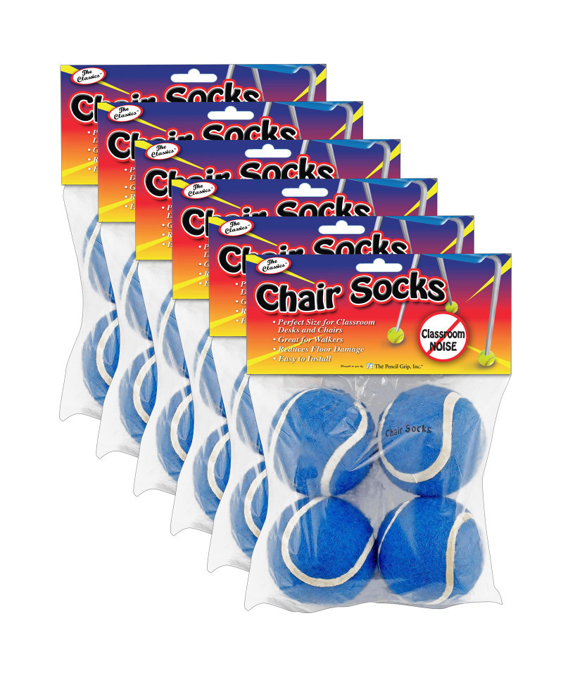 Put an end to classroom clatter with Chair Sox! This great product eliminates the distracting noises of shuffling chairs and desks in a classroom setting. The chair sox come pre-cut and ready to put on. The blue color hides dirt and wear. Assembly is easy, just slip it over the foot of the chair, no tools required. Fits all standard classroom style chairs and desk legs. Great for use on walkers too! Pack of 4. Sold as 6 packs, 24 pieces total.