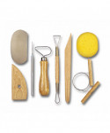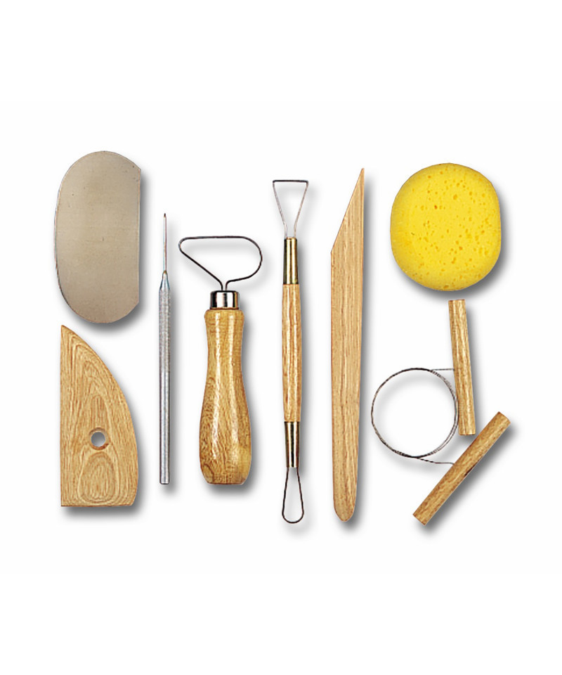 - Complete 8-Piece Pottery Tool Set: Includes a wood potter’s rib, sponge, loop tool, ribbon tool, needle tool, modeling tool, wire clay cutter, and steel scraper for all your clay sculpting needs.