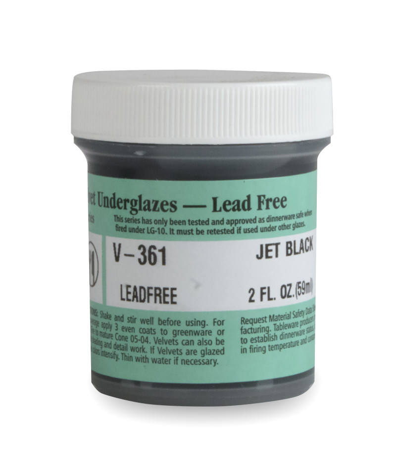 - Wide Firing Range: Jet Black Velvet Underglaze is a cool black color that is smooth and velvety at cone 05, darkens at cone 5, and becomes darkest black and slightly glossy at cone 10. A clear glaze deepens and accentuates the underglaze significantly at any temperature.