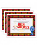 High Honor Roll Certificate awards students who have academic excellence. This Hayes certificate is beautifully designed with a red background. The certificate features a blue Academic Excellence ribbon. These are great to give to students at end of the year parties and award ceremonies. This blank honor roll award can be personalized with the recipient's name and other information pertaining to the award. They can be either handwritten or printed with a downloadable template. Measures 8.5" x 11". Each pack includes 30 certificates. Sold as 3 packs for a total of 90 certificates.