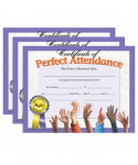 Certificate of Perfect Attendance is a great way for teachers to reward students for not missing a day of school. These Hayes student certificates feature a light purple border that are printed in full color on high quality matte paper. Perfect to give out to student at end of the year parties and award ceremonies. They can be personalized with the student's name and other information pertaining to the certificate. Downloadable template is available. Inkjet and laser printer friendly. Each individual pack contains 30 certificates and measure 8.5" x 11". Sold as 3 packs, 90 certificates total.