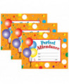 Perfect Attendance Certificates and Reward Seals are great way to reward students for not missing a day of school. Great for teachers to use as classroom incentives. These beautifully designed Hayes certificates are printed in full color on high quality matte paper. Students will take pride in their achievements as they work to earn more reward seals for their certificates. These student certificates can be personalized with our downloadable template. They can be printed or handwritten. Inkjet and laser printer friendly. Certificates measure 8.5" x 11". Each individual pack contains 30 certificates, 160 reward seals, and an instructor's guide. Sold as 3 packs, 90 certificates and 480 reward seals total.