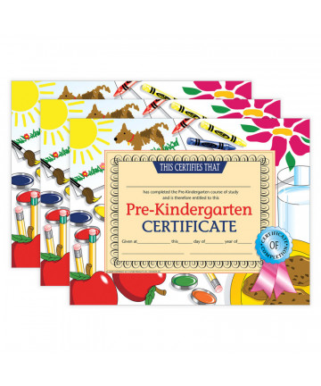 Celebrate early learning! Recognize children's first school experiences and give them a feeling of success. The charming designs and messages celebrate participation and completion. Printer-compatible. Ready to frame. 30 per pack, 8.5" x 11". Sold as 6 packs for a total of 180.