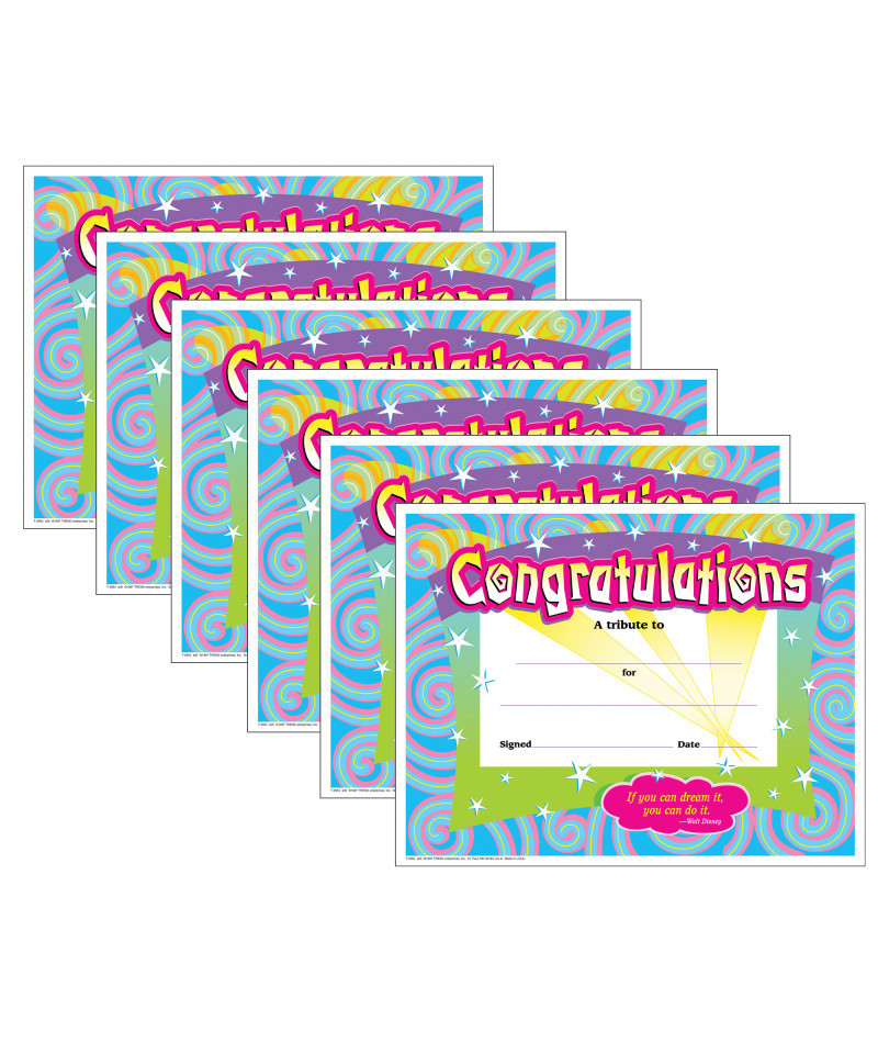 Mark achievement throughout the year. Take every opportunity to honor older students as well as adult volunteers and staff. Our certificates offer dynamic designs and positive messages. Printer-compatible and ready to frame. Each pack includes 30 certificates measuring 8.5" x 11". Sold as 6 packs for a total of 180 certificates.