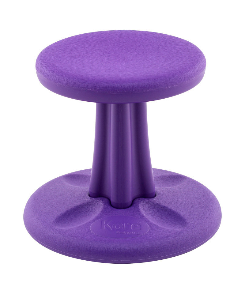 The innovative Kore Design® Kids Pre-School Wobble Chair with its gently-rounded bottom encourages active sitting and allows one's knees, hips and back to find comfortable and ever-changing positions. Continuous movement increases Secondary Focus – concentrating on the task instead of fixating on sitting still. Active sitting can also help improve posture and prevent pain or stiffness that may result from prolonged sitting. Seat height 12"; suggested for ages 4-5; grades PK-K; child height of 40"-43".