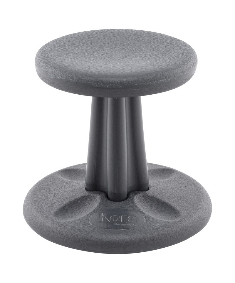 The innovative Kore Design® Kids Pre-School Wobble Chair with its gently-rounded bottom encourages active sitting and allows one's knees, hips and back to find comfortable and ever-changing positions. Continuous movement increases Secondary Focus – concentrating on the task instead of fixating on sitting still. Active sitting can also help improve posture and prevent pain or stiffness that may result from prolonged sitting. Seat height 12"; suggested for ages 4-5; grades PK-K; child height of 40"-43".