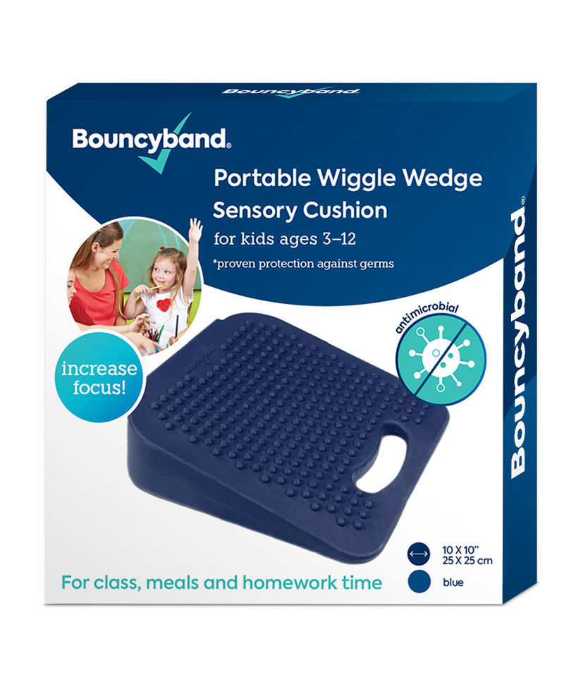 Kids have an outlet for excess energy while seated alleviating anxiety, hyperactivity and boredom, increasing focus and academic performance. Allows children to silently move while working, enabling greater concentration. Unique antimicrobial material offers a proven barrier against multiple dangerous pathogens including E. Coli, Staphylococcus, and many other bacteria, fungi, and molds. Flexible nubs on one side and smooth surface on the other give a choice for just the right amount of tactile stimulation reducing anxiety, restlessness, and the need to fidget. Portable and easily transferred so kids can bring the cushion to every class and home again for meals and homework time. Ergonomic cushion gently tilts the hips, pelvis, and spine forward placing kids in a more active seating position encouraging them to sit properly improving posture, and strengthening the core. Comes inflated with easy-inflation pump included.